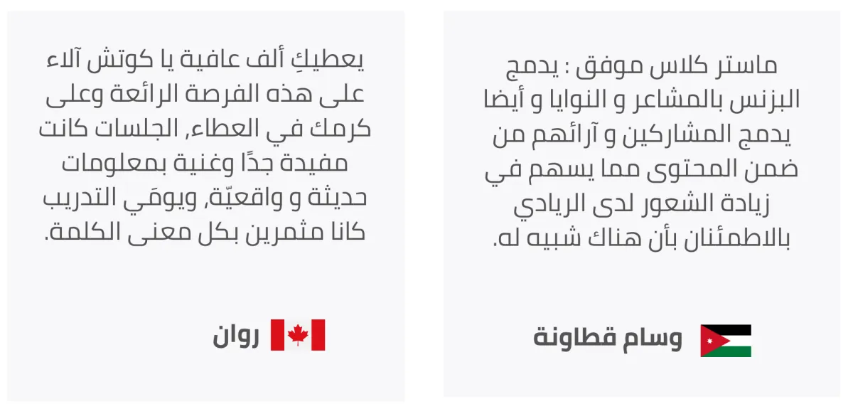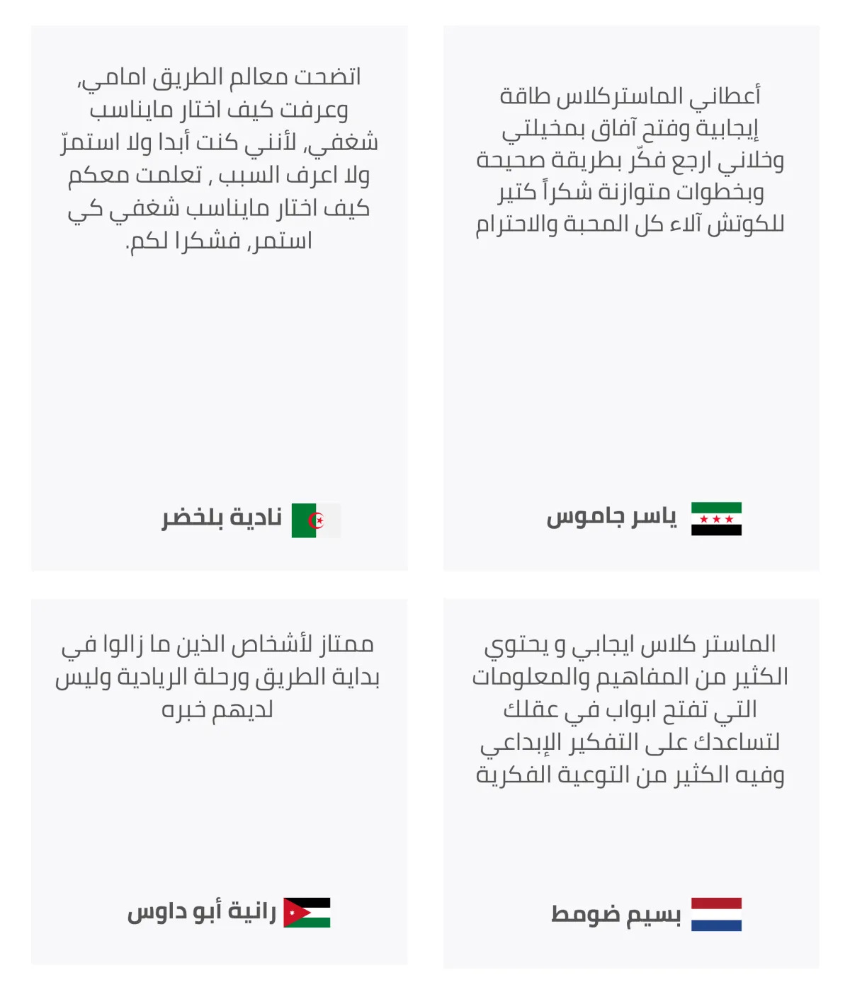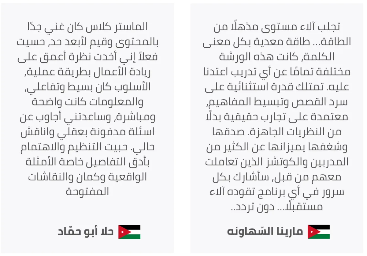 ستخرج من هذا الماستر كلاس بوضوح - حتى لو لم تنضم لأي برنامج لاحقًا, لأن ما ستحصل عليه كافي جداً..و مع ذلك نستطيع إرشادك
